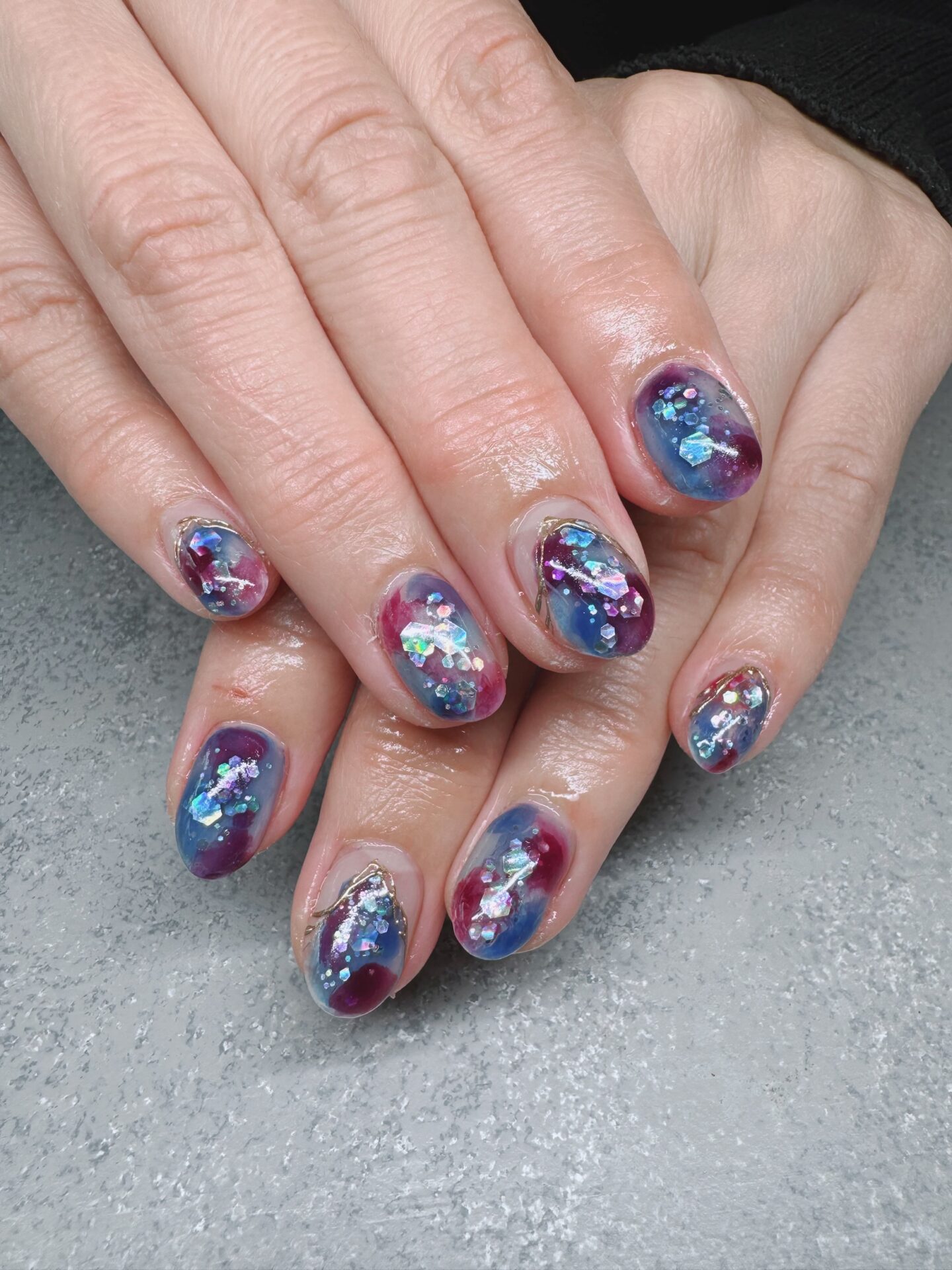 ラメとブルー・パープルのアート。